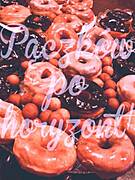 Doughnuts z tangzhong jak zawsze udane. Za to krem waniliowy, ktorego uzywam tez zamiast lukru do ciast czekoladowych, jest bajeczny. Dodatki wg fantazji 4 maloletnich dekoratorek. :)