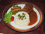 Wczoraj zupa z kurer i pierogi z mięsem a na dzisiaj gulasz i placki ziemniaczane.