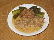 Kasza z gulaszem i ogóras:)
