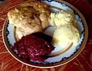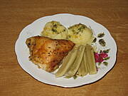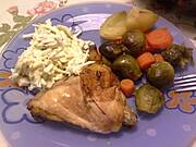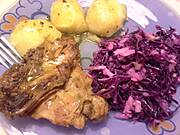 Duszone udko, ziemniaki i "kiszona" czerwona kapusta: