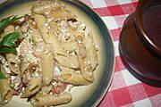 Makaron razowy z serem białym,boczkiem i cebulką + barszcz...