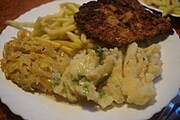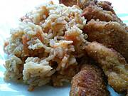 sobota frytki z kurczaka z sosem z fetą, ryż z warzywami (z dnia poprzedniego)