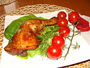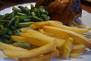 Kurczak pieczony w czosnku i miodzie ,frytki ,fasolka szparagowa ...