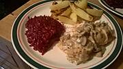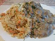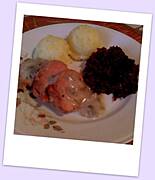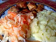 Wczoraj ziemniaki,karkówka duszona w sosie śmietanowo-pieczarkowym i surówka z kiszonej kapusty