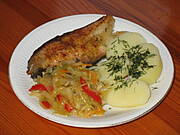 U mnie również karp smazony, mini frytki i kapusta czerwona z jabłkiem i konfiturą z czerwonej cebuli + sok z czarnej porzeczki.