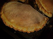 Calzone wg przepisu pwyso z farszem z salami,parmezanem i oliwkami.