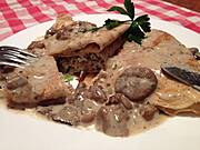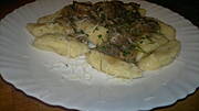 Naleśniki ruskie z sosem pieczarkowym i żurek
