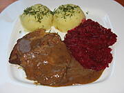 Czwartek: rosol z makaronem, na drugie rolady w sosie własnym, kluski śląskie i modra kapusta