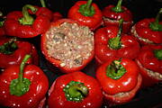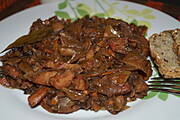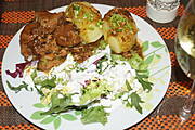 Dojadam gołąbki bez zawijania - zapiekane, z sosem pieczarkowym na ostro (wszystko z WŻ), zapijam lekkim czerwonym łinkiem (tym razem bułgarskim). Dla mojego zapracowanego Męża ugotowałam makaron z czosnkiem niedźwiedzim i usmażę niebawem kostki łososiowe, do tego papryka marynowana lub pieczarki na ostro (łinka nie dostanie, bo białego nie kupiłam, a nie będę 'profanować' rybki czerwoną Kadarką)...