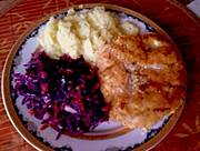 Wczoraj: kotlet z fileta kurczaka,ziemniaki,surówka z czerwonej kapusty.