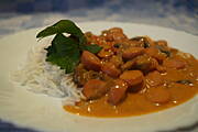 Gulasz z parówek,pieczarek i ogórka z ryżem basmati ..