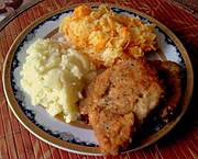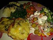 Miały być zwykłe schabowe panierowane , powstały zapiekane z serem i pieczarkami bez panierki , do tego marchewka z groszkiem, mieszanka warzyw z fetą i prażonym słonecznikiem...a i jeszcze był rosół z kury z kluseczkami ;)