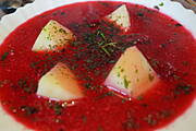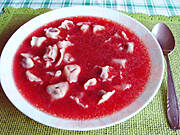 Dzisiaj: Barszcz czerwony zabielany z ziemniakami, na drugie domowe pierogi ruskie okraszane cebulka, do picia sok z pomaraczy