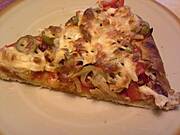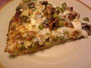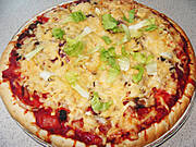 z salami peperoni, pieczarkami, groszkiem i papryką