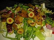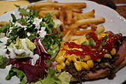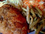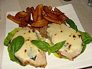 schab a'la pizza,frytki ,mix sałat z rukolą i sos czosnkowy ...