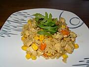 Kurczak w sosie słodko-kwaśnym i ryż.