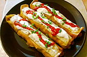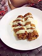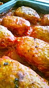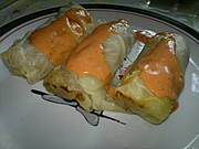 Nalesniki z sosem bolonskim ( tym prawdziwym, dlugo gotowanym z wolowina, winem...), mozzarella di bufala, sosem czosnkowym z domowego majonezu i rownie domowego jogurtu naturalnego. :)