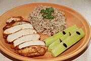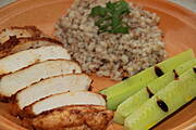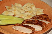 Na życzenie synusia....Pierś w Pieprzu Ziołowym, domowym + leniwe + ogórek :)
