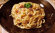 I na późną obiado-kolację spaghetti alla carbonara wg AggusiA.. Bardzo, bardzo dobre..