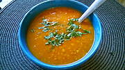 Wczoraj i dziś zupa z pomidorami, czerwoną soczewicą i mlekiem kokosowym..