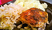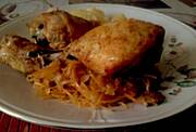 Kurczak na kiszonej kapuście wg baby.. Podany z ziemniakami.
