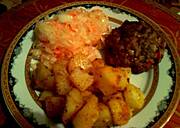 Dziś jarzynowa , ziemniaki, surówka z kapusty kiszonej i gulasz, jutro Kapuśniak na żeberkach :)