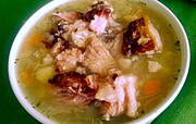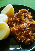 Bigos (wygrzebany z czeluści zamrażarki) i ziemniaki.. Dla delikatnych żołądków - rosół drobiowy z makaronem..