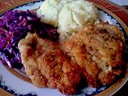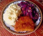 Kotlet schabowy lub rybka smażona,ziemniaki,surówka z czerwonej kapusty.