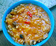 Dla każdego coś miłego.. Rosół drobiowy z makaronem dla córy; fasolka po bretońsku będzie dla M, a ja.. hmmm.. "piekielnie ostra jednogarnkowa moc warzyw z pęczakiem"..:))) Pyszne toto mi wyszło..:)