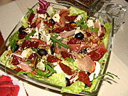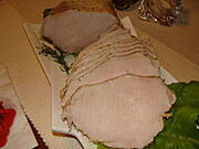 Szynka pieczona w czosnku i peperoni. Dla mnie zapieczona z mozarellą i bazylią.