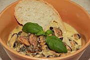makaron rurki w sosie pieczarkowo-serowo-śmietanowym.