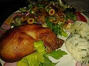 Rosół z kaczki z lanym ciastem ,ziemniaki,kotlet schabowy,pieczarki majonezowe i sałata lodowa ze śmietaną ...