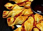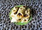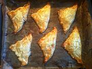 Oczywiście proszę, bo to nie jest żadna tajemnica. A przepis jest banalnie prosty. Kupujesz gotowe ciasto francuskie, kroisz na kwadraty, nadziewasz dowolnym farszem, składasz w trójkąty i pieczesz. :)
