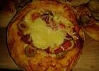 To chyba i tu wstawię zdjęcie. A co tam - pizza z bundzem, białym oscypkiem, pleśniowym niebieskim, mozarellą i goudą, cebula i czarnymi oliwkami.