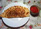 Onion Paneer Kulcha( na wierzchu, okragle) i Naan. :) Ser paneer robilam sama, musze przyznac, polaczenie z czerwona cebulka, chilli, imbirem i kolendra, zamkniete w ciescie chlebowym (na sodzie i proszku do pieczenia z jogurtem) znakomite. Naan drozdzowe, posmarowane maslem i obsypane sola morska jak zawsze swietne.