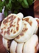 w mące robię wgłębienie, wkruszam drożdże, posypuje cukrem, zalewam kiloma łyżkami mleka (letniego), posypuję mąką, zostawiam na 5-10 minut. dodaję resztę mleka, jogurt, sól, spulchniacze, wyrabiam 3 minuty, dodaję tłuszcz. wyrabiam do momentu, aż ciasto będzie gładkie, powinno być dość lużne. przekładam do naoliwionej miski, obtaczam raz, przykrywam i zostawiam na godzinę w ciepłym miejscu. odgazowuję, przekładam na omącony blat, dzielę na 10 lub nawet 16 części, jeśli chcę mniejsze chlebki. dłonmi formuję owalne, lekko łezkowate pacuszki około 7-10 mm grubości. rozgrzewam patelnię, na rozgrzanej układam chlebek, najpierw przerzucam go z jednej ręki do drugiej, by zrzucić nadmiar mąki. piekę około 1 minuty (mniejsze około 45s), przewracam, przykrywam i piekę kolejną 1 minutę z drugiej strony, zdejmuję z patelni, smaruję masłem, posypuję solą. mozna posypać ziołami, masło wymieszać z czosnkiem i solą...mi najbardziej smakują najzwyklejsze.