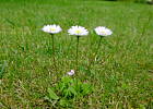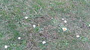Stokrotki w trawie. Pozamykały już główki do snu, ale pomimo, że to chwast to ja tam je za chwasty nie uznaje.