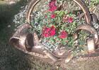 Kwiaty poniewierał wiatr, jakieś tam focie zrobiłam dla Was ... A psiaczki tylko absolutnie miały się dobrze. Arystokratka Bella na swojej dwuosobowej ławeczce pod winnobluszczem , dziwnie patrzyła na latającą Megi po ogrodzie .. )))