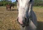 konwalie na tle malw,paprocie,leszczyna,i pół kosiarka -dobra trawa. I z drugiej beczki otwieram magiczną furtke na koncu ogrodu i już jestem nad rzeką i koni