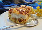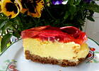 imbirowy sernik z karmelizowanym rabarbarem pod galaretką. Musi jeszcze trochę postac w lodówce