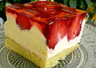 U nas ciacho z masą budyniową, truskawkami i galaretką jabłko - mięta :)