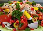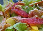 Sałata lodowa z mango,grejpfrutem i wędzonym łososiem...do tego sos miodowo-cytrynowy:))