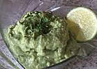 Avocado + łyżka jogurtu greckiego + tarty ząbek czosnku + sok i skórka z połowy limonki + sól i pieprz.