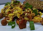 Jajecznica z boczkiem i szczypiorkiem, patelniane podpłomykówki :)