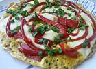 Frittata z pieczarkami, parówkami cielęcymi, oliwkami, serami i rukolą... :)