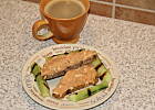 Aż wstyd pisać - pożarłam kilka tostów z masłem orzechowym i dżemem jeżynowym. Taki leniwiec ze mnie z rańca.