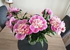A wracając do moich piwonii... mam ich wiele, kwitną w różnym czasie. W tym roku wyjątkowo cieszą moje oko, bo co tam będę ściemniać - mój ogród w części kwiatowej jest zaniedbany jak nigdy. Wiosna przeszła obok mnie, nie miałam siły ani okazji żeby cokolwiek robić na działce, więc wszystko sobie rośnie prawie na półdziko. Na zdjęciach trawska nie widać, ale... w przyszłym roku będzie lepiej. Ale mimo tego braku zadbania, piwonie rosną, zakrywają owe chwaściory i kwitną, nic sobie nie robiąc z otoczenia. Uwielbiam je za to, uwielbiam wszystkie kwiaty, nawet chwasty kwitnące są urocze, a ich kwiatuszki takie ... delikatne, subtelne. Ależ się rozpisałam z rana. Zostawiam kawusię i ciasteczko do niej. A dla wielbicieli piwonii - bukiet tychże. Czyż nie cudowne?