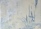 Wczoraj wskoczyłam w koszulkę nocną po 21-ej i powoli szykowałam się do spania. Coś mnie podkusiło i poszłam rzucić okiem na ten przedostatni, ciemny obraz. Nie jestem z niego zadowolona więc chodzę koło niego i sama nie wiem co chcę zmienić. Nim się spostrzegłam już rozrabiałam farbę i zaczęłam coś poprawiać, domalowywać. Potem już tak mi się nie podobało to, co zrobiłam, że zaczęły się zmiany bardziej konkretne. Efekt końcowy był taki, że minęła 23-a, obraz w rozsypce. Hm...
