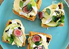 I jeszcze gofry, wersja na odgrzewanie. Poszłam po miętę, a wypatrzyłam jeszcze figę, ostatnia opóźniona jakaś. Nawet eco system jej nie ruszył, pewnie nie spodziewał się. Z jabłkiem, serem pleśniowym camembert, miętą i figą
