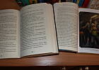 Niedawno szybko też czytało mu się pierwszą z pięcioksięgu ,,Kroniki Podziemia - Gregor i Niedokończona Przepowiednia" oraz ,,Łowcy Trolli" mimo, iż obie książki już takie całkiem ,,dorosłą" czcionką pisane...hi hi hi:)) -fotka otwartych książek:)